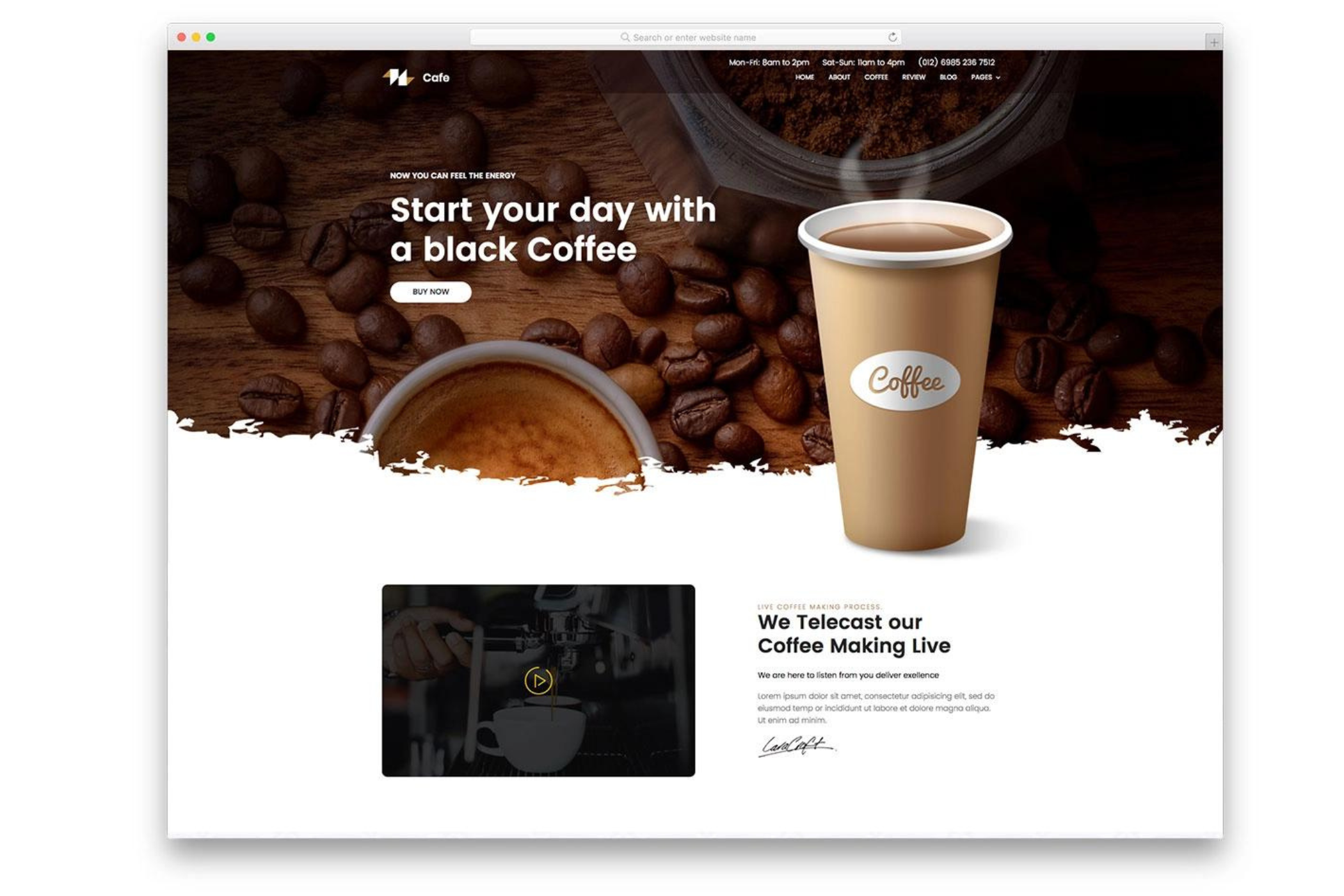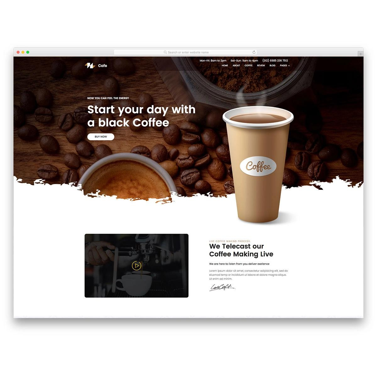 Um template acolhedor e atraente para cafeterias e bares que desejam transmitir a essência e o ambiente do seu estabelecimento. Com designs convidativos e seções customizáveis para realçar o cardápio e a atmosfera do local, este template promete encantar os amantes de café e de experiências gastronômicas.